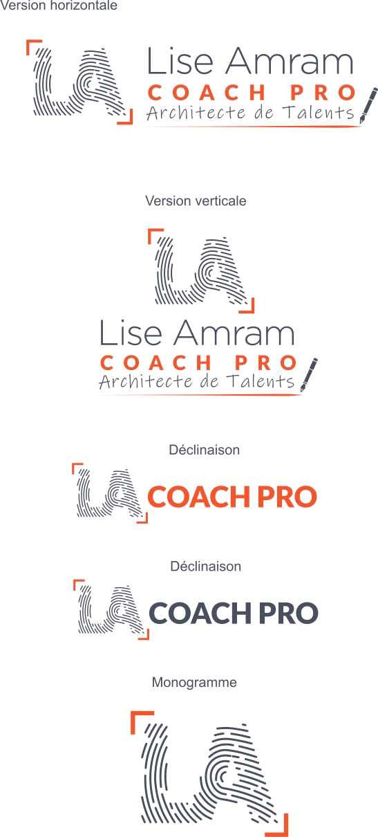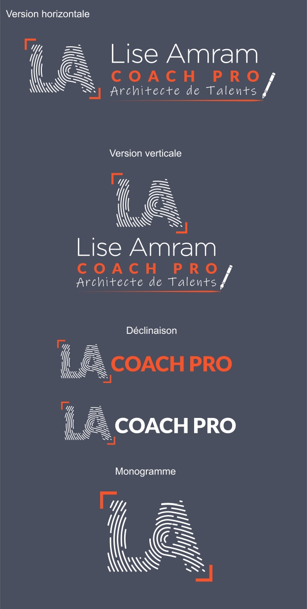 Au cœur de cette identité, le logo présente une empreinte subtile en forme de “LA”, fusionnant les initiales de la coach avec une signature visuelle forte. Cette empreinte symbolise l’authenticité, l’impact singulier de l’accompagnement et l’empreinte laissée dans le parcours de chacun.